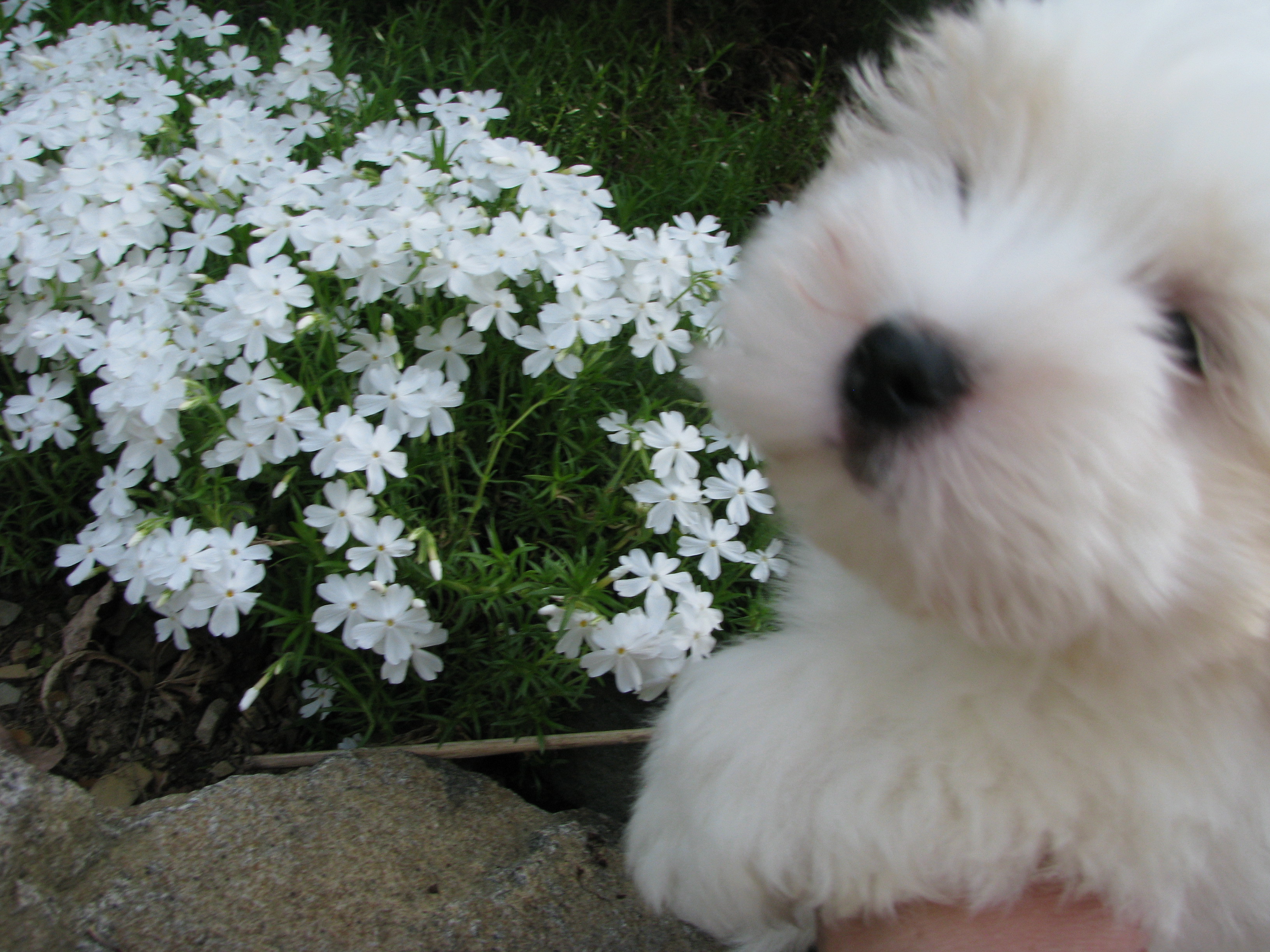 Our beautiful little blossom, Misaki presents herself with such gracefulness in the show ring. She is a beautiful white coton with dark pigmentation.