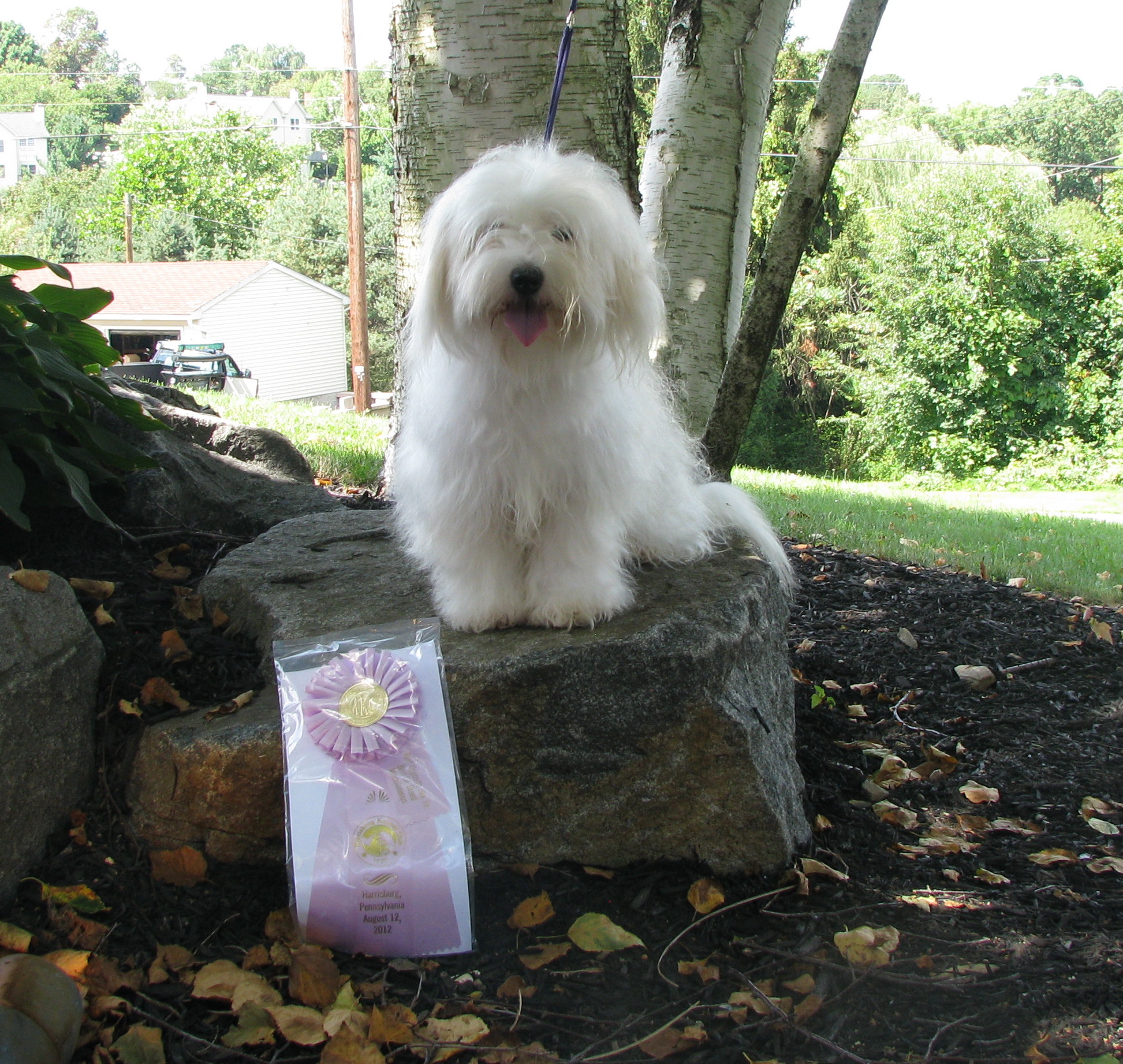 Misaki favors her father, Bark at the Moon and has challenged him in the show ring winning Best of Breed and Best in Miscellaneous.