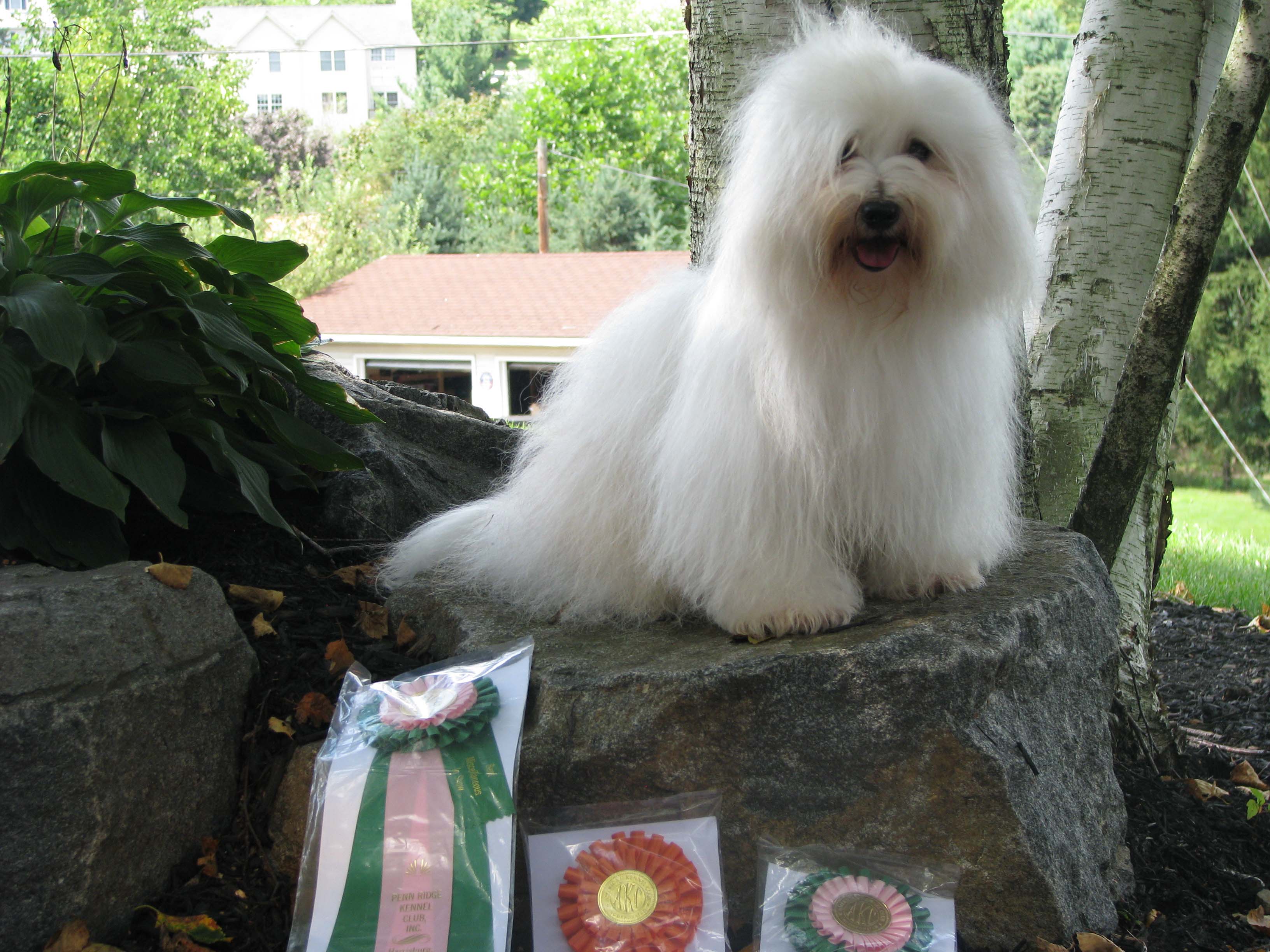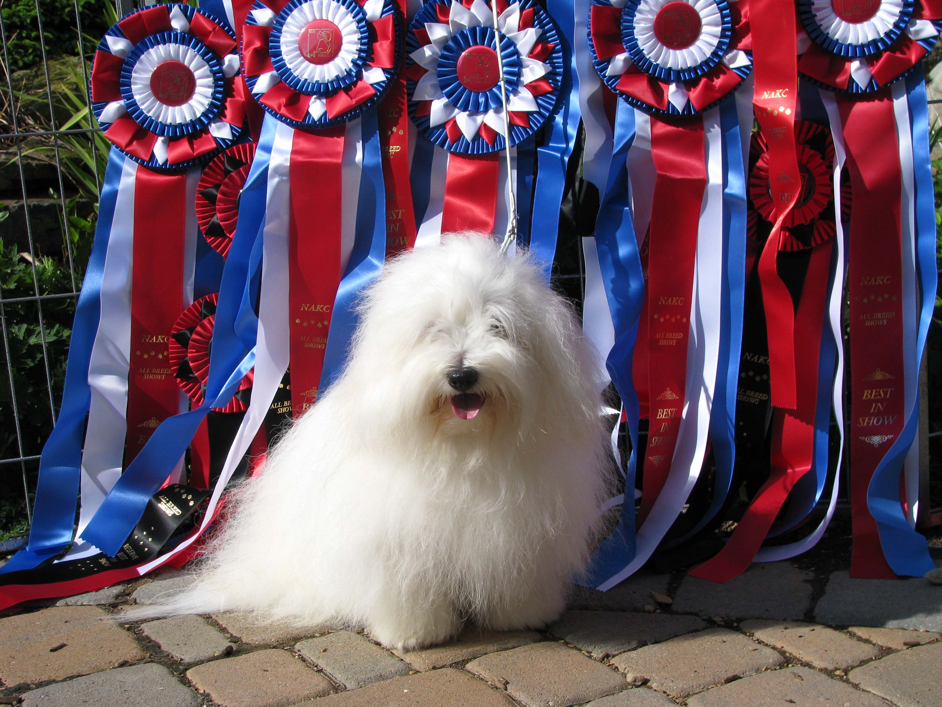 Ozzy is a beautiful white male with very dark expressive eyes and incredible pigmentation. It is very hard to look away from that handsome face. He has excellent movement and loves the show ring. He is a real class act.